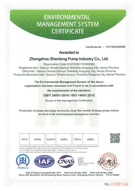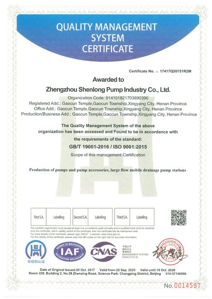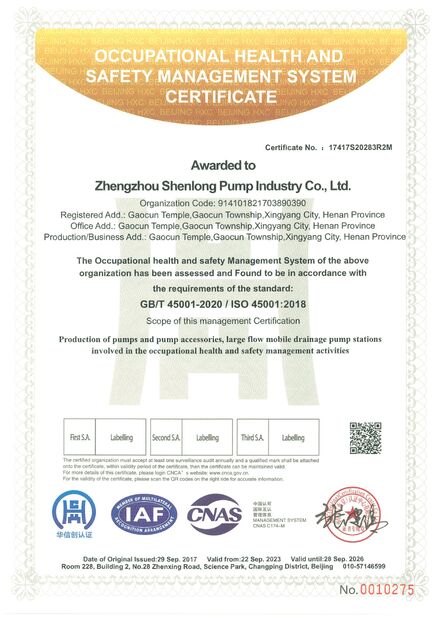 | Scope/Range: | Production ofpumps and pump accessories,large flowmobile drainage pump stations involved in the occupational health and safety management activities |